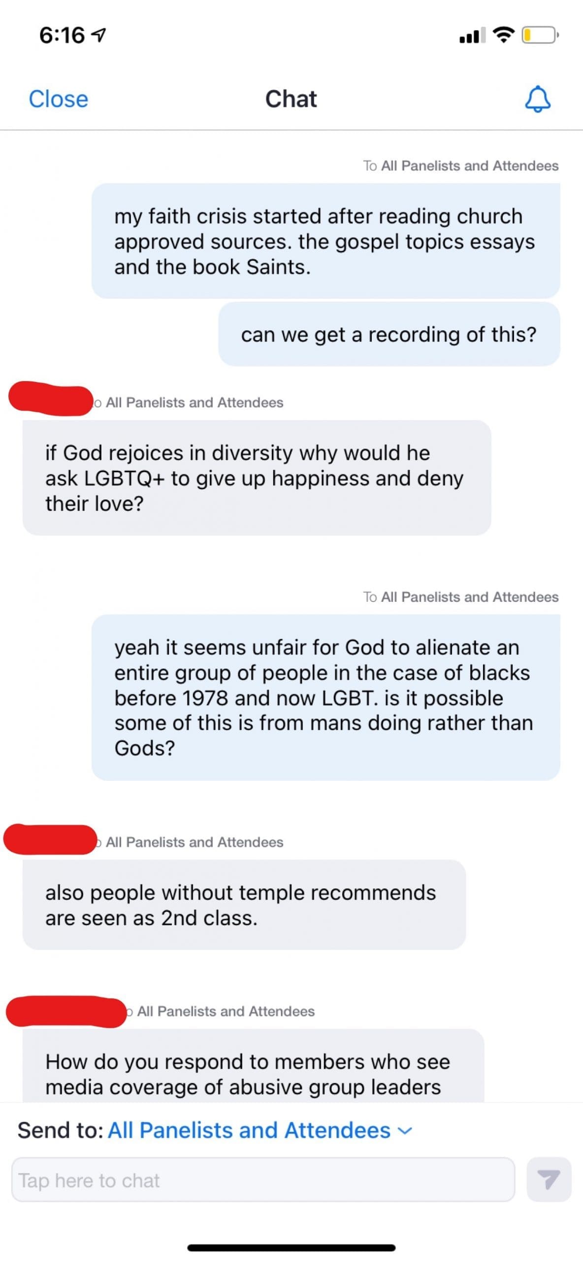 Below I have included screen shots of the questions that were submitted by questioning stake members during the Q&A. I have also included the stake president statement that they decided NOT share Patrick’s presentation on the stake Facebook page as they had said they would during the presentation.